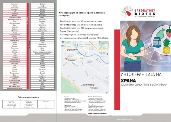 Во лабораториите на Биотек , ви е достапен IgG тестот за нетолеранција на храна се одредува со земање на веска крв , при што се испитува дали во крвта има присутно ИгГ антитела кон одредени намирници.